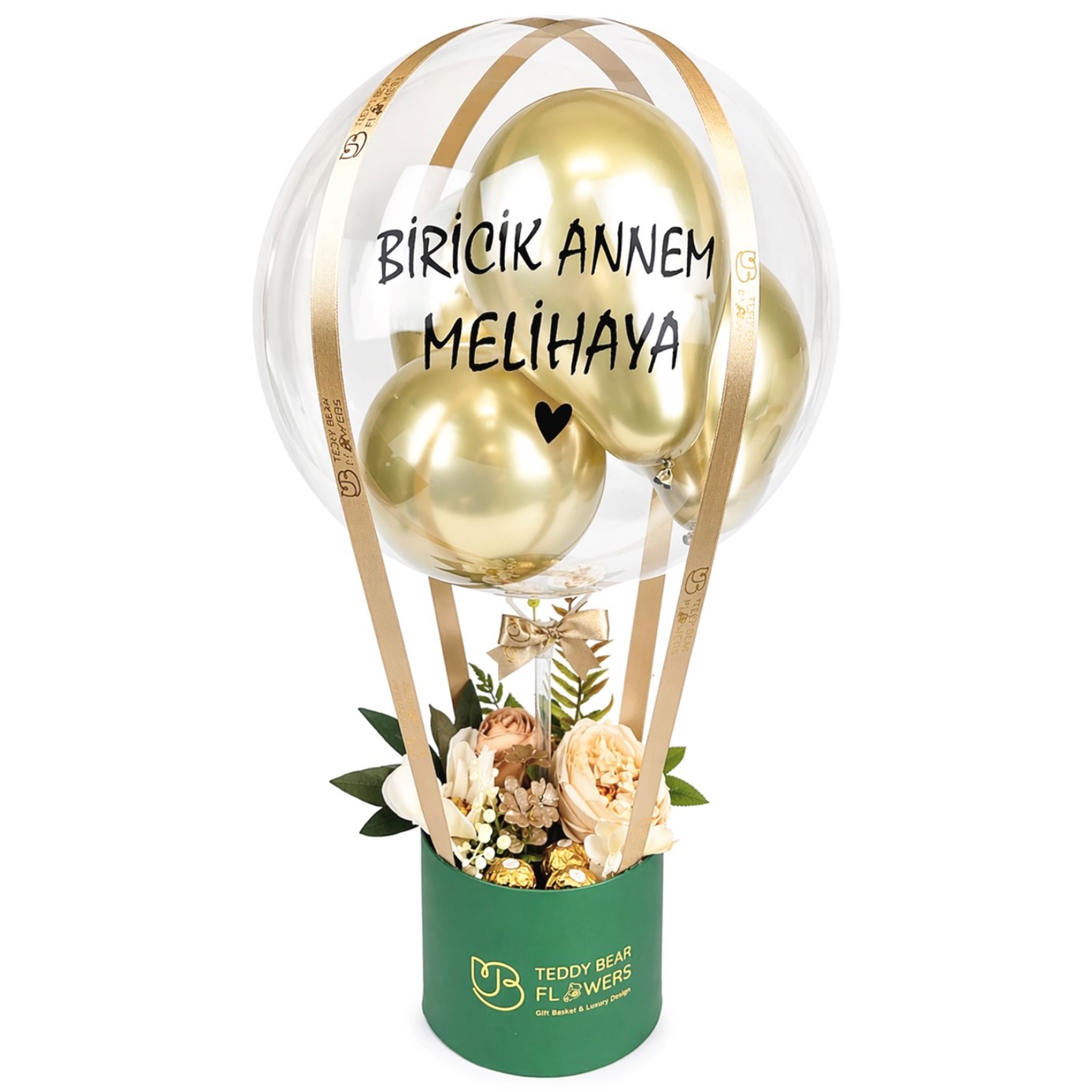 Anneler Günü Kişiye Özel Balon Kutusu – İsimli Gold Balon & Çikolatalı Lüks Hediye