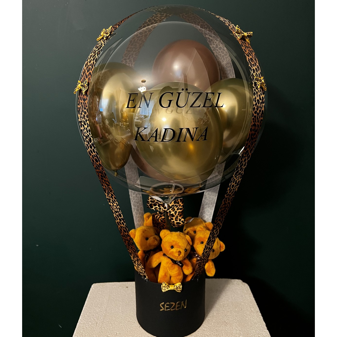 Balon Kutusu - Premium Leopar Gold | Öğretmene Hediye, Aynı Gün İstanbul | U&B Teddy Bear Flowers