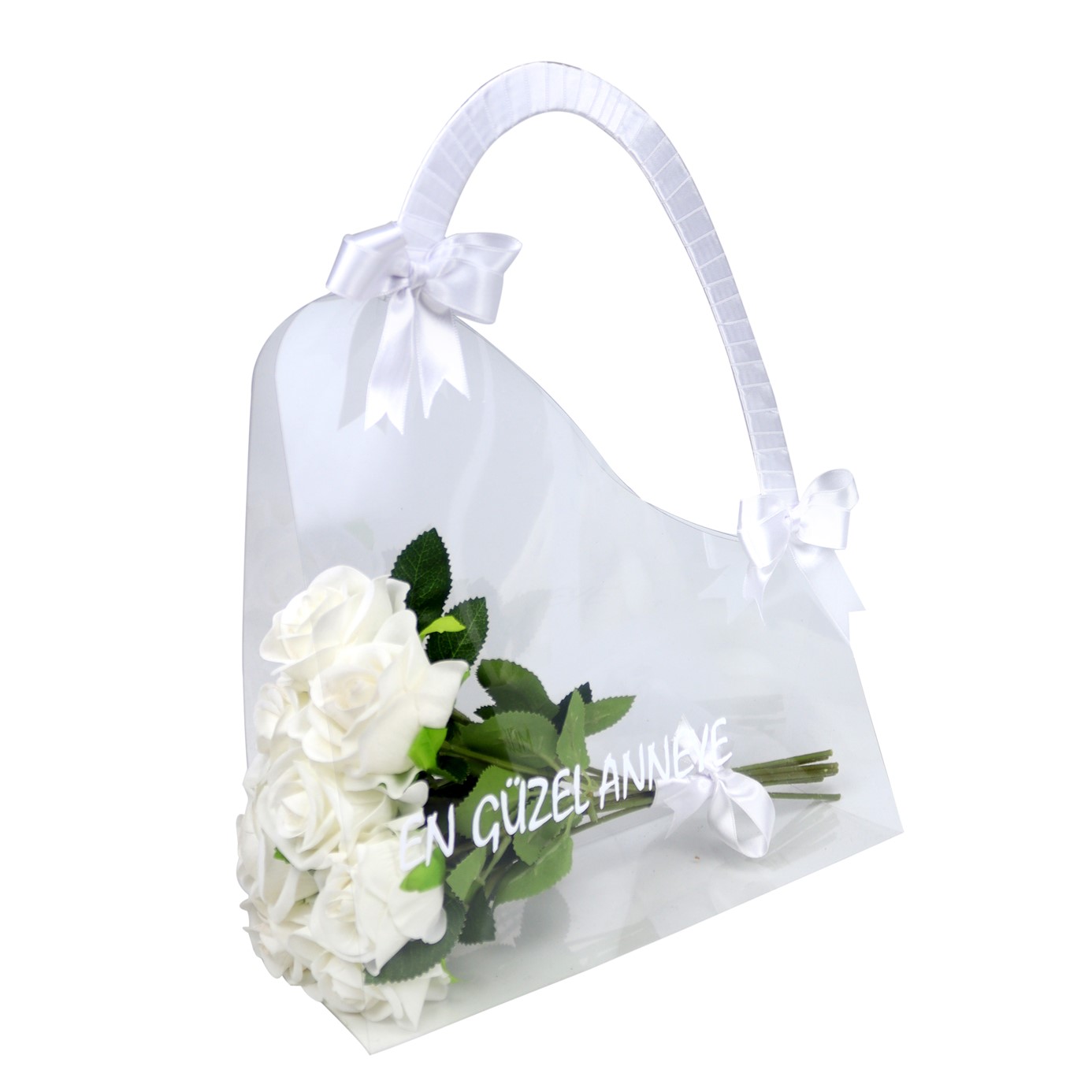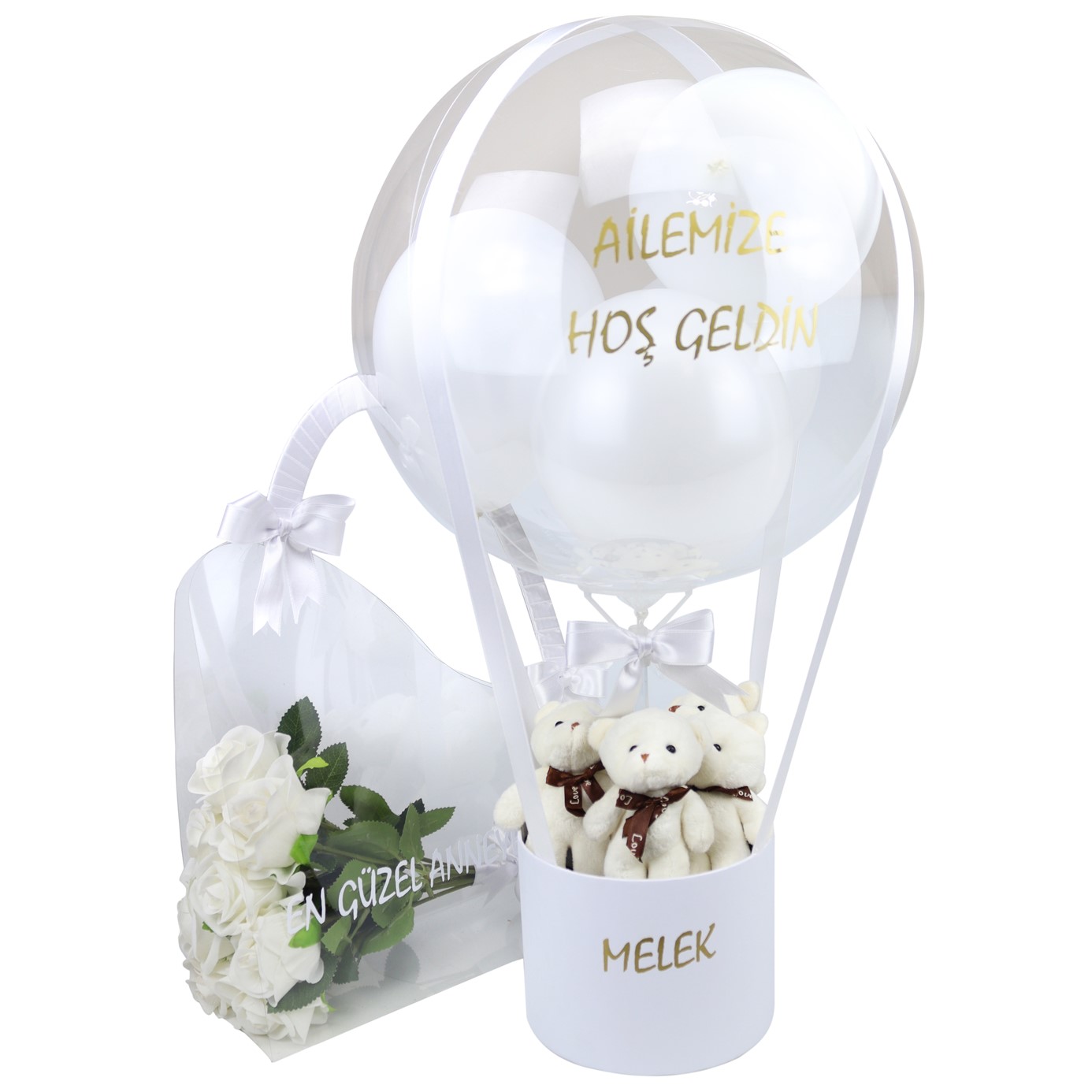 Balon Kutusu - Soft Beyaz Ayıcıklı Balon Kutusu & Çantada Kalıcı Güller | Aynı Gün Teslimat | U&B Teddy Bear Flowers