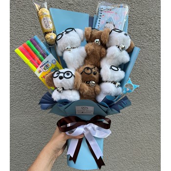 Çıngıraklı Köpek Figürlü Okula Dönüş Ayıcık Buketi