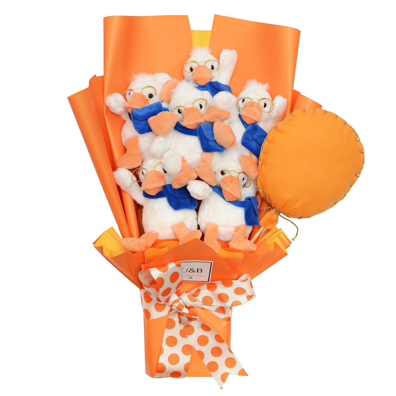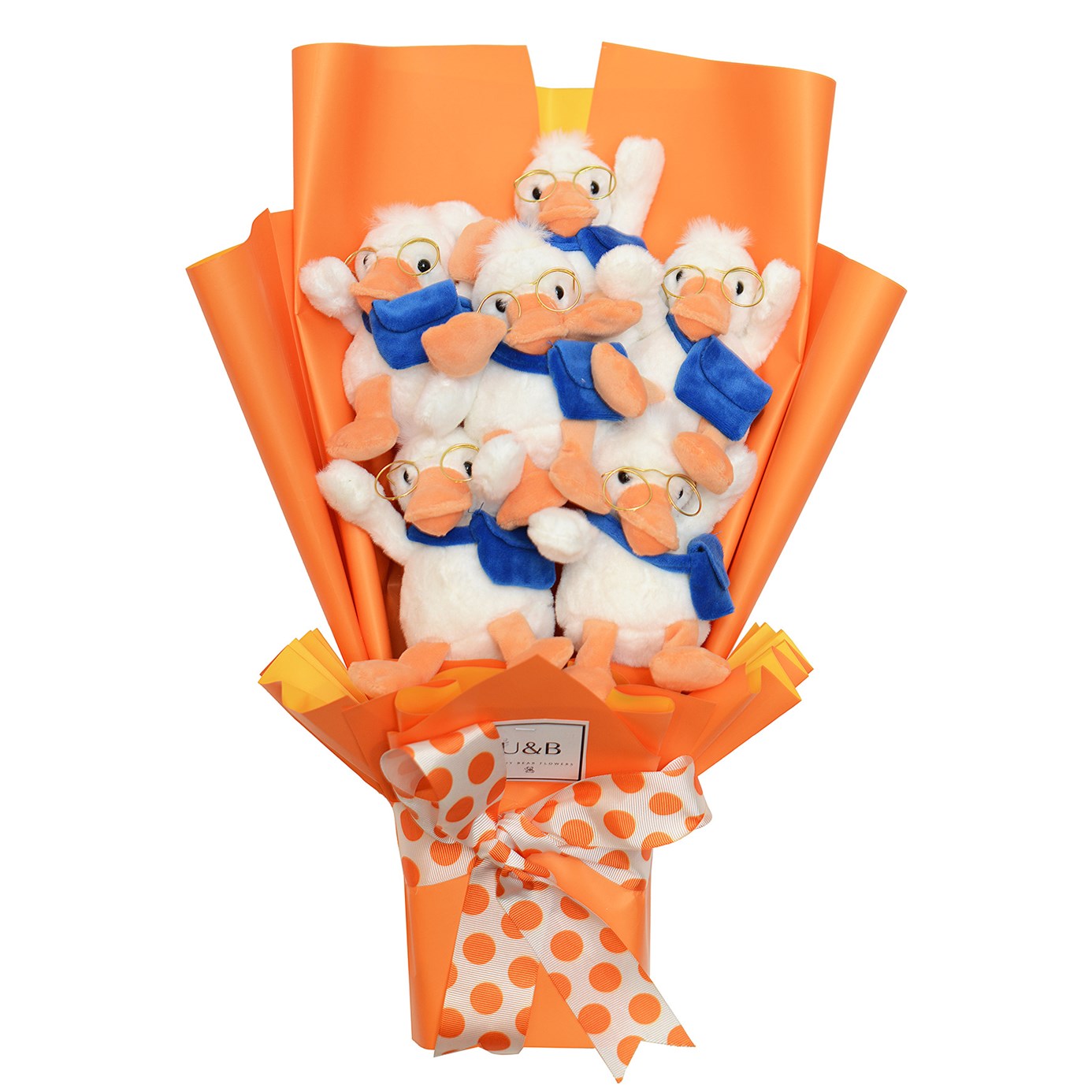 • İçerisinde 7 adet 14 cm'den oluşan peluş gözlüklü ördek figürlü ayıcıklar, isteğe bağlı 1 adet turuncu yastık bulunmaktadır. Çoğu ayıcık buketine göre ultra boy olma özelliği göstermekle birlikte ürün boyutu 35 x 50 cm'dir.