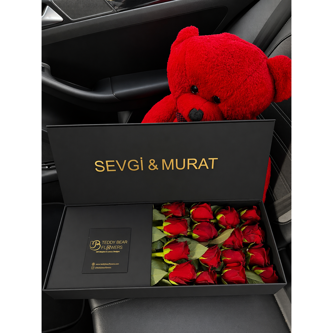 Kişiye Özel Premium Kutuda Kırmızı İthal Güller | Lüx Sunum | U&B Teddy Bear Flowers