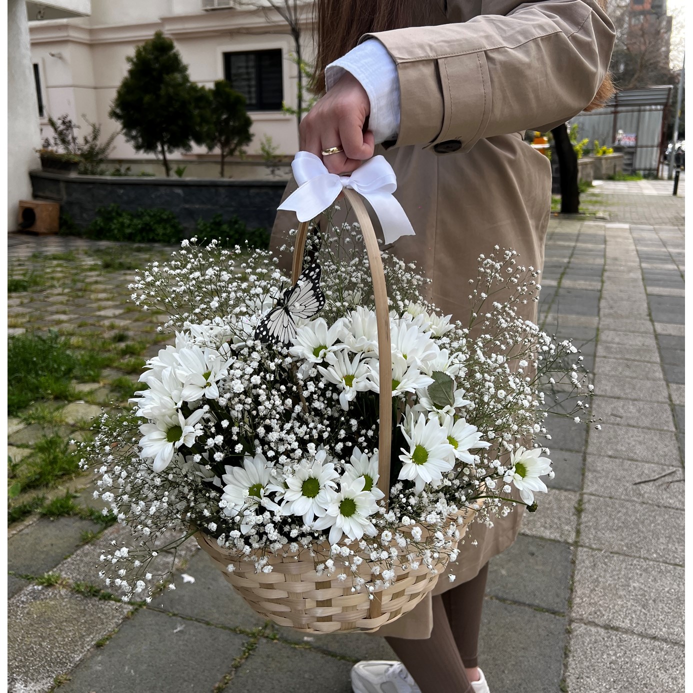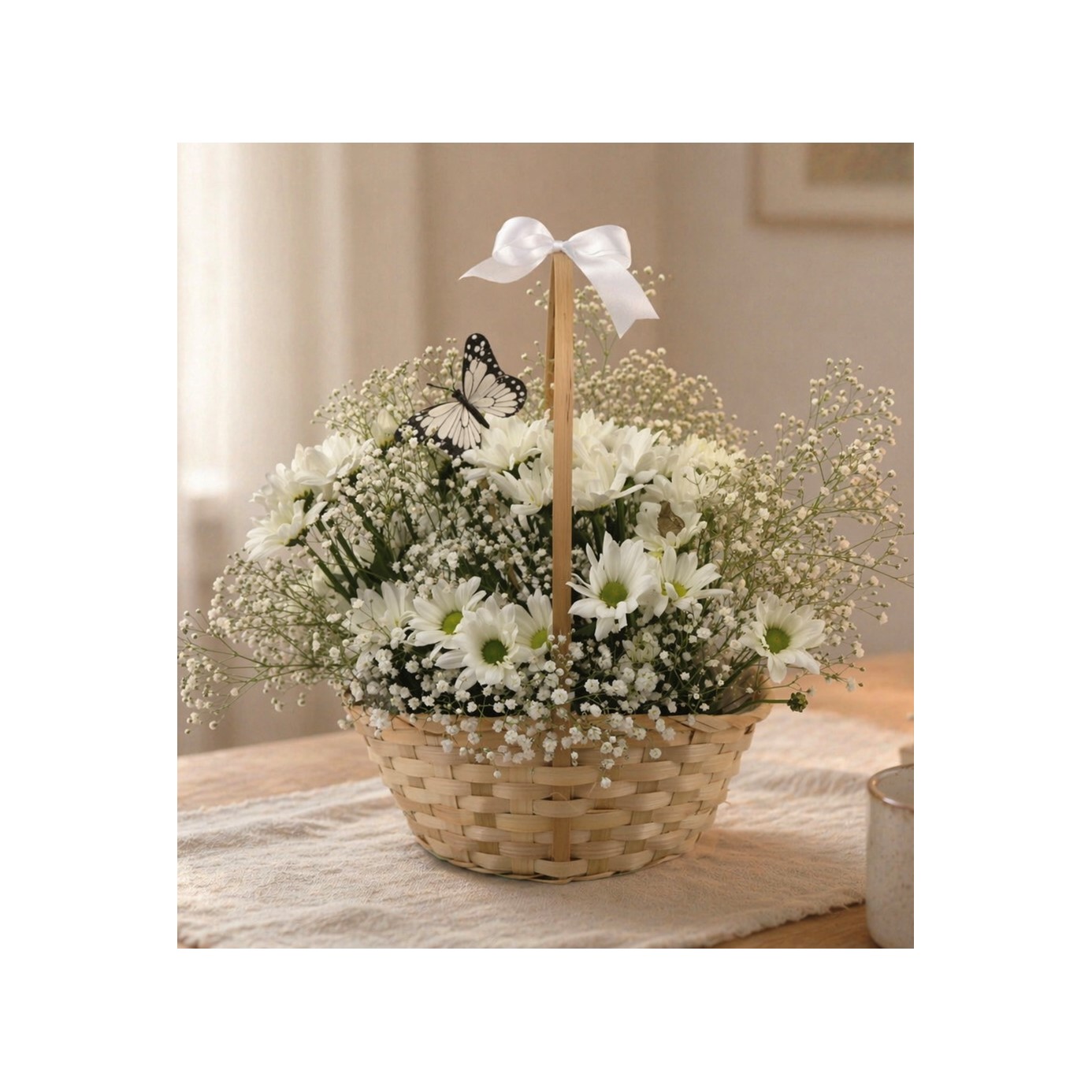 Papatyaların huzur veren beyaz tonları ve zarif dokunuşlarla hazırlanan bu özel aranjman, bulunduğu ortama ferahlık ve mutluluk katar.