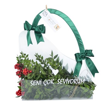Balon kutusu içinde 1 adet mum, 1 adet ıslak gül, kokina süs, geyik peluş bulunmaktadır.