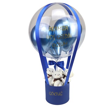 Yenidoğan Bebek Hediyesi - Lacivert Balon Kutusu | Kişiselleştirilebilir